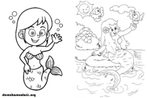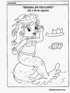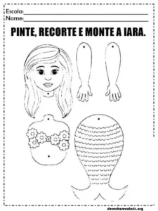 Here on the site, you’ll find several images of Iara to print and color, perfect for unleashing your imagination. You can create a delicate Iara with vibrant colors reminiscent of the shimmer of water, or opt for more mysterious tones that reinforce the magical side of the legend.