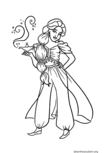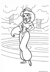 For those who love the character, here on the site you’ll find several images of Jasmine to print and color. These drawings highlight her beauty, her strength, and her fearless approach to life. When coloring, you can let your imagination run wild: have you ever thought about creating a version of Jasmine with completely new colors or even giving the palace a different, unconventional touch?